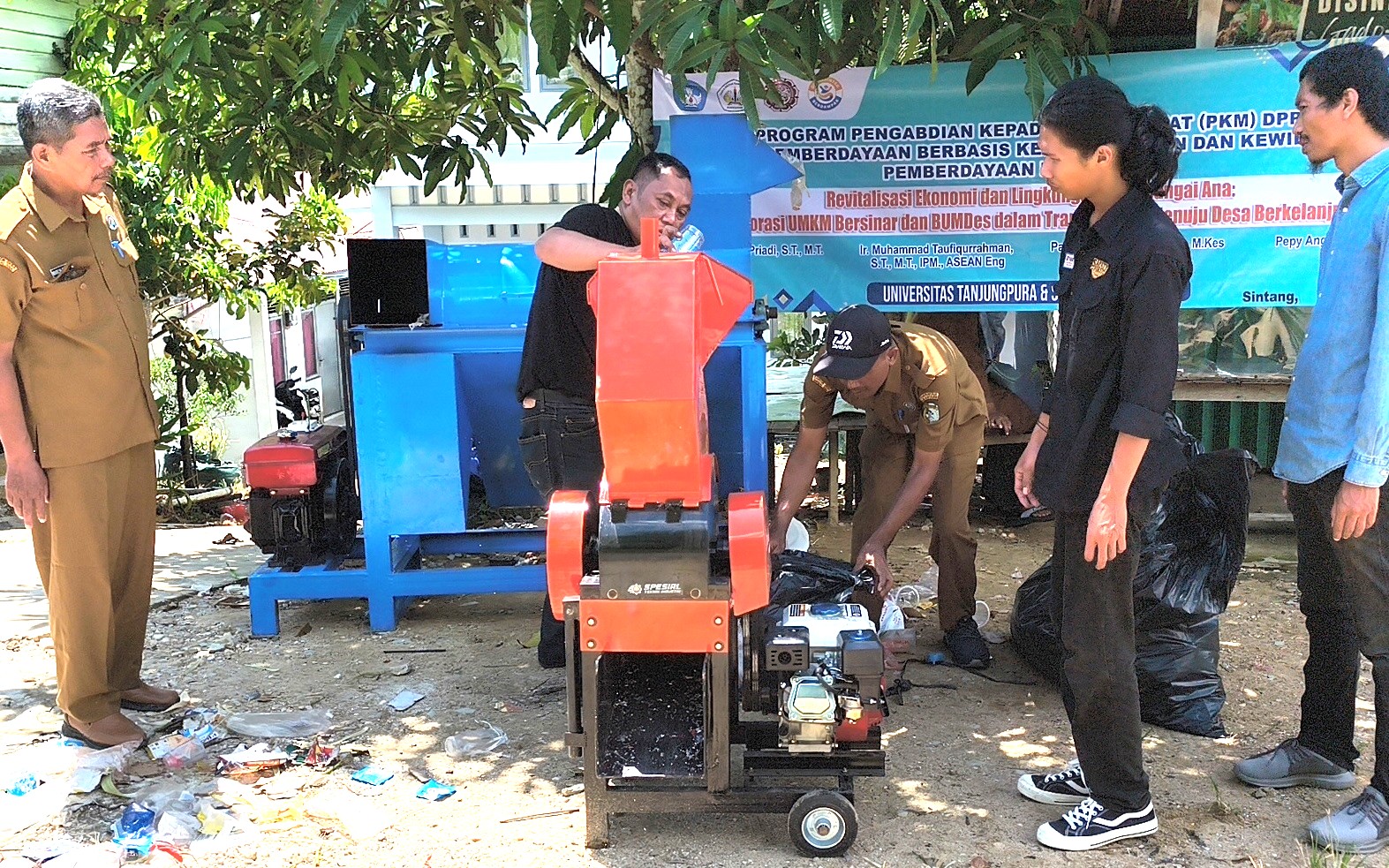 SINTANG – Sejumlah dosen dan mahasiswa Fakultas Teknik Universitas Tanjungpura (UNTAN) berkolaborasi dengan Sekolah Tinggi Kesehatan Kapuas Raya (STIKARA) Sintang melaksanakan kegiatan Pengabdian Kepada Masyarakat (PKM) di Desa Sungai Ana, Kecamatan Sintang, Kabupaten Sintang, pada Selasa (14/10). Kegiatan ini diketuai oleh Eka Priadi bersama anggota tim M. Taufiqurrahman, Pepy Anggela dan Paskalia Tri Kurniati, serta didukung mahasiswa Pascalis, Apriansyah, dan Azka.
