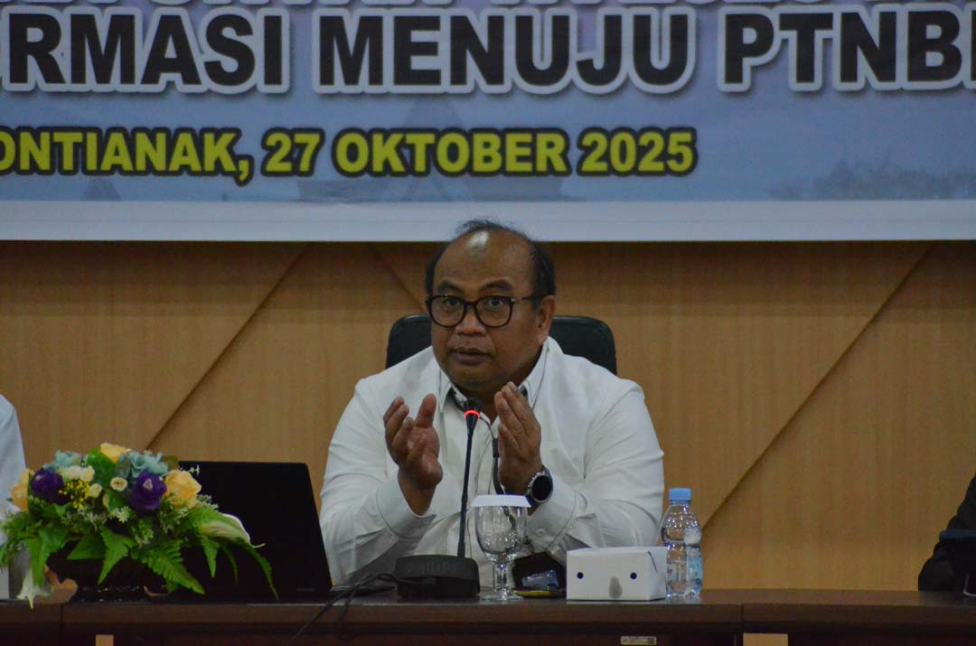 Sementara itu, Wakil Rektor Bidang Perencanaan, Kerja Sama, dan Sistem Informasi UNTAN, Prof. Dr.rer.nat. Ir. R. M. Rustamaji, M.T., IPU, menyampaikan apresiasi atas kehadiran narasumber yang juga menjabat sebagai Ketua Dewan Pengawas PK-BLU UNTAN tersebut.